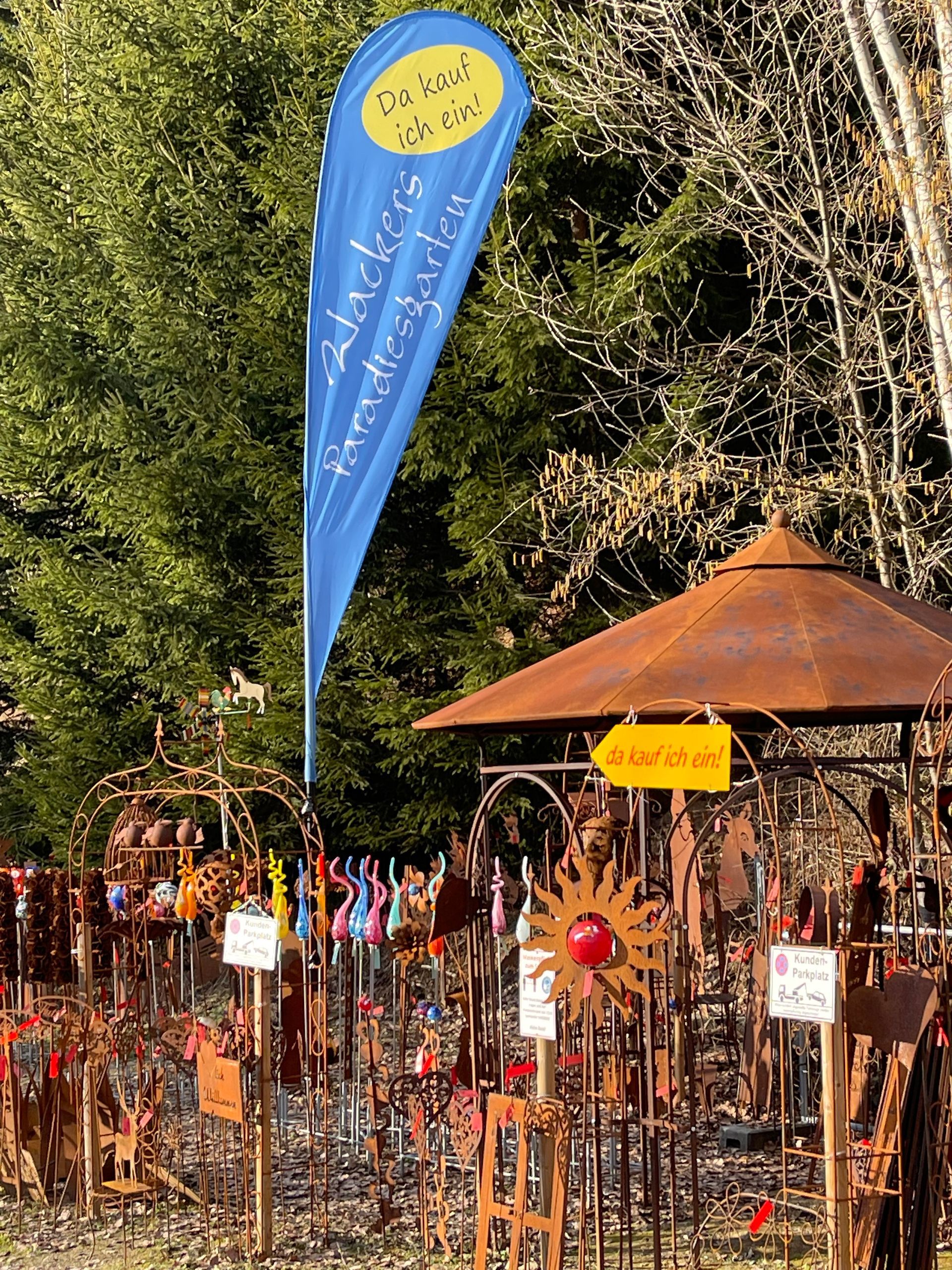 Von der B 85 in die Museumstraße abbiegen,wenn die Teerstraße zu Ende ist,dann 800 Meter auf dem Schotterweg zum Wackers-Paradiesgarten fahren. Großer Parkplatz für Busse und Autos.